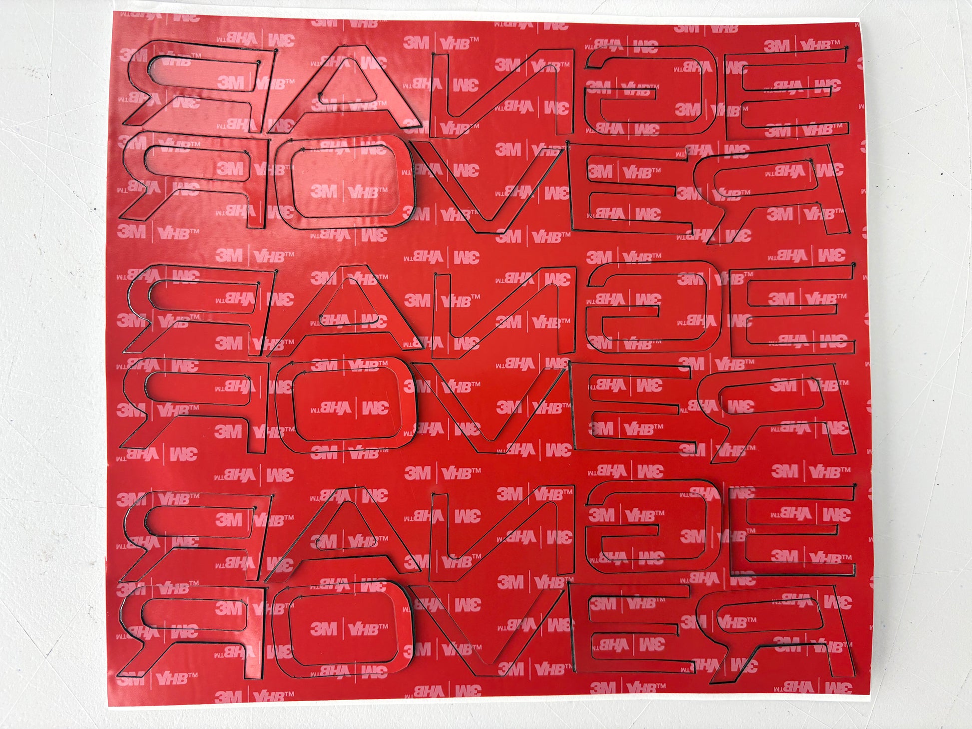 This pre-cut 3M VHB tape is a perfect fit for the 2022 and up Range Rover and Range Rover Sport Hood/Bonnet letters. These are for the front hood only, they do not fit the rear hatch letters. The hood letters are stylized with 3 unique "R"s and 2 unique "E"s. Rear Kits will also be available Soon.